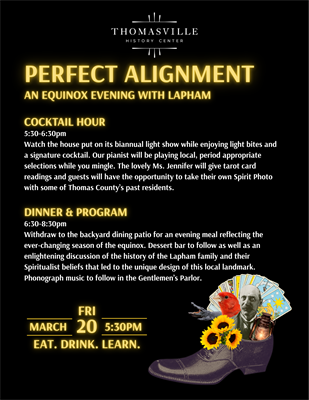 Perfect Alignment is the first annual fundraiser created exclusively to support the preservation and programming of the Lapham-Patterson House, which operates with its own dedicated budget under the stewardship of the Thomasville History Center in partnership with the Georgia Department of Natural Resources’ Historic Preservation Division.