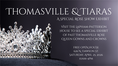 Join us during Rose Show weekend for a special open house at the Lapham-Patterson House featuring Thomasville & Tiaras, a pop-up exhibit of historic Rose Queen gowns and crowns.